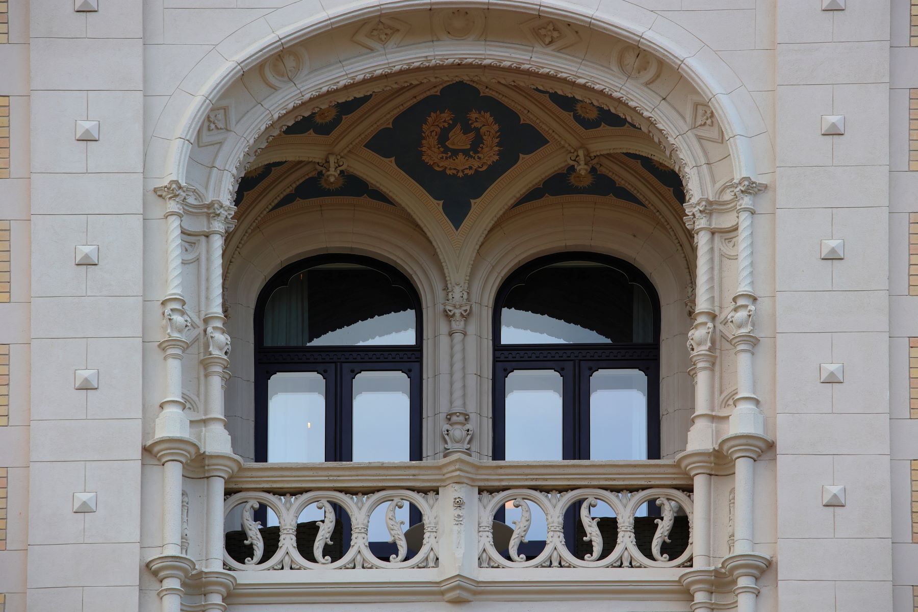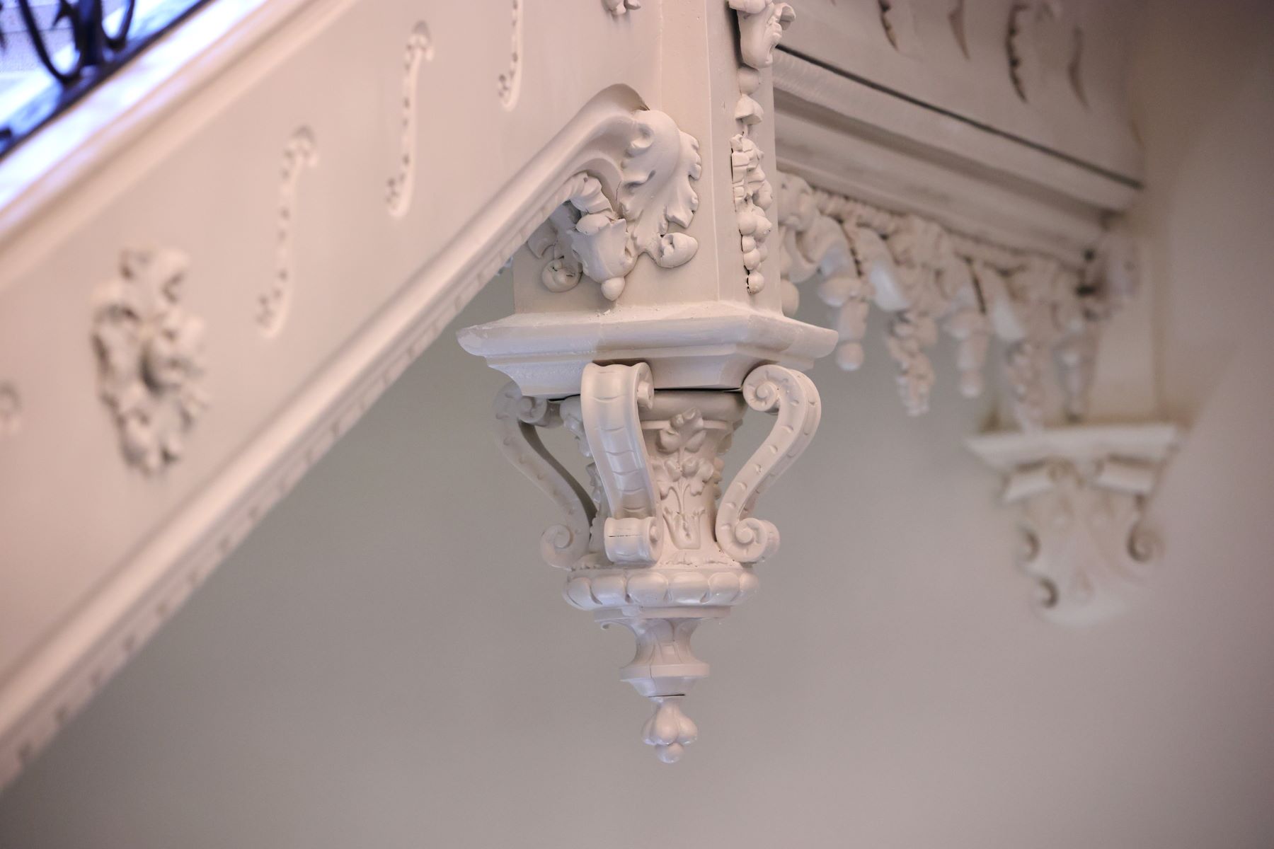 A Drechsler-palota elegáns oldal-lépcsőháza induló részének míves díszítése - részlet.