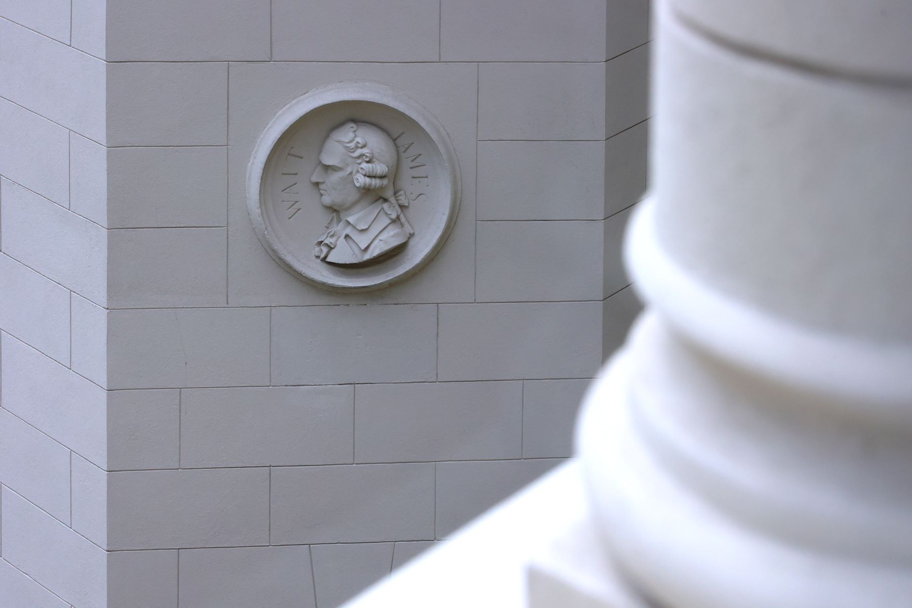 Mivel a ház MÁV-beruházásban épült, számos részlet utal a vasútra. Az udvari homlokzaton James Watt portréja látható, aki skót feltaláló és mérnök volt. James Watt a gőzgép fejlesztésével lényegesen hozzájárult az ipari forradalomhoz.