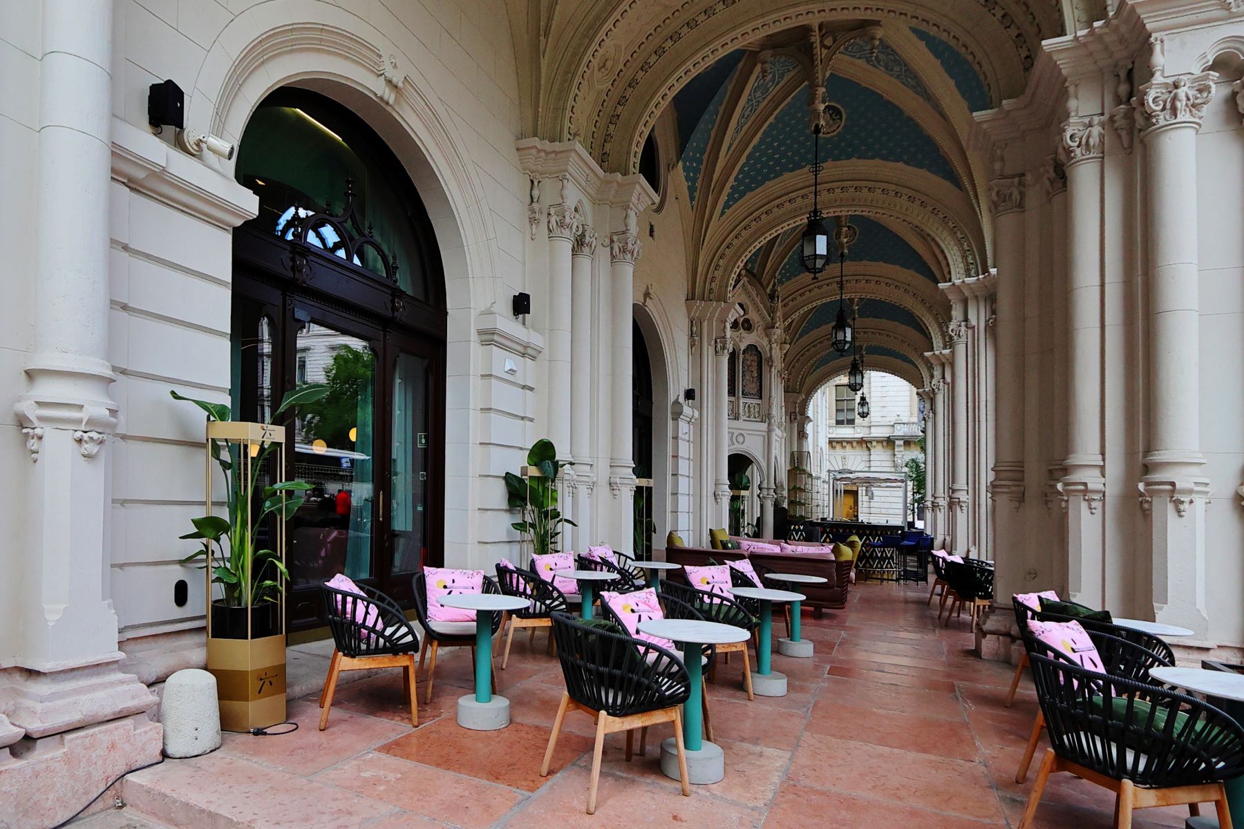 Ha arra jársz, és felfelé nézel, észreveheted, hogy az épület csodálatosan kialakított árkádja gyönyörű mennyezettel, az üzlethelyiség felé cirádás bejárattal rendelkezik. Ezen árkád alatt egy csésze tea, vagy pohár kávé mellett cseréltek eszmét politikusok, írók, színészek, zeneszerzők.