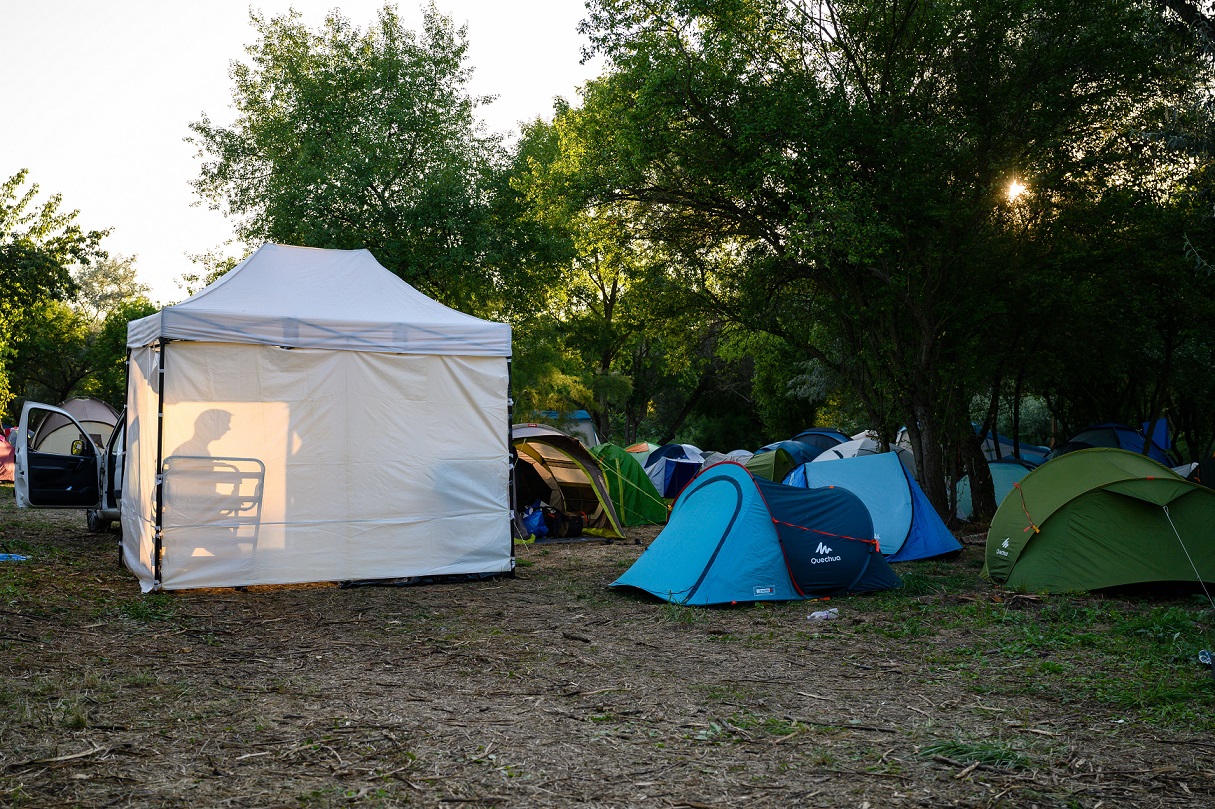 Fesztiválozó az Egyetemisták és Fõiskolások Országos Turisztikai Találkozójának (EFOTT) kempingjében a Velencei-tó északi partján, Sukorón 2021. augusztus 10-én. MTI/Vasvári Tamás
