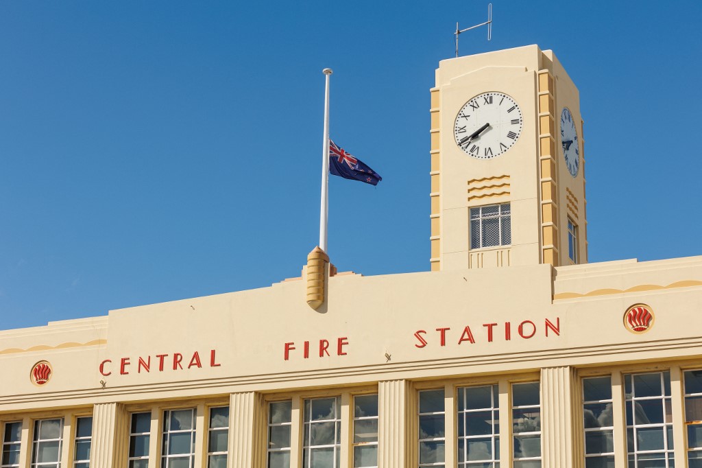 Félárbocra eresztett brit zászló a wellingtoni központi tűzoltóállomáson (Fotó: Mike Clare / Anadolu Agency)