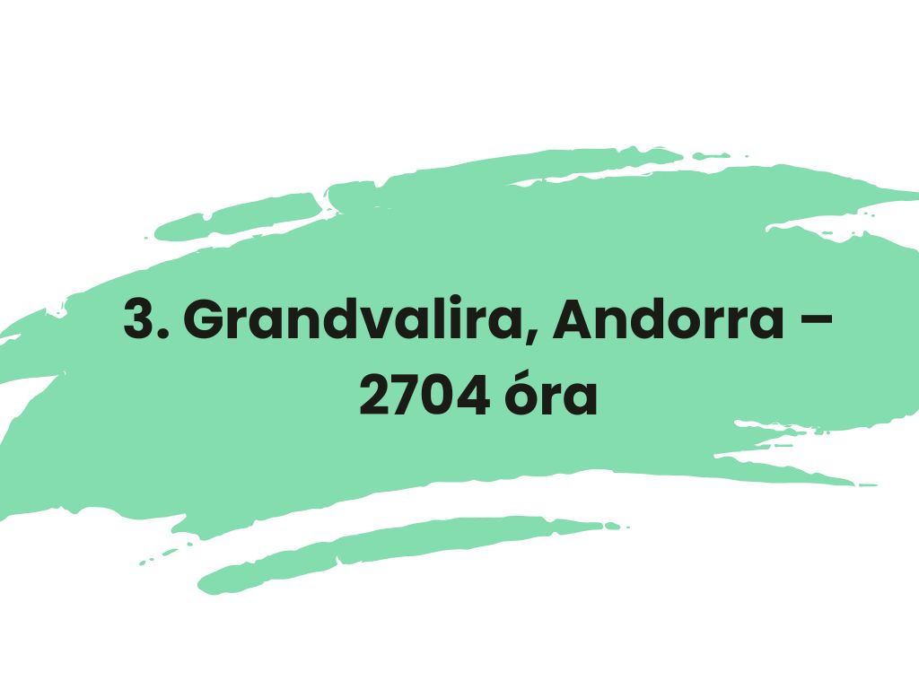 A ranglista második helyén a bolgár Bansko végzett, 2744 órányi éves napsütéssel. A síközpont az utóbbi években látványosan felkapott lett köszönhetően megfizethetőségét és élénk éjszakai életét. A harmadik helyet Andorra legnagyobb sírégiója, Grandvalira szerezte meg, 2704 órányi napsütéssel. A Pireneusok legnagyobb síterületeként egyaránt ideális a kezdők és a haladók számára.