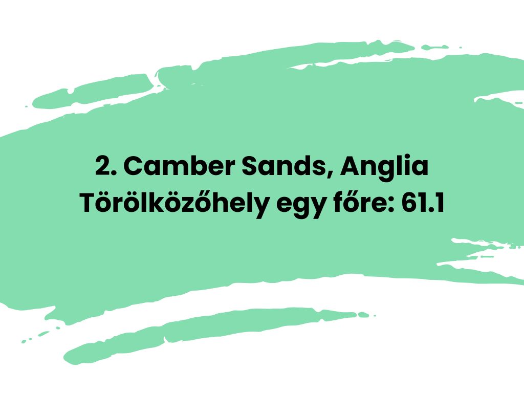 A második helyen Camber Sands áll, ami East Sussexben, Angliában található. A La Manche csatorna mentén húzódó, közel öt mérföld hosszan elterülő, homokos part bőséges helyet kínál – akár 61 strandtörölköző is elfér fejenként. Az utóbbi időben egyre népszerűbbé vált a helyiek és a turisták körében, különösen a londoniak keresik fel szívesen, részben a TikTokon szerzett hírnevének köszönhetően.