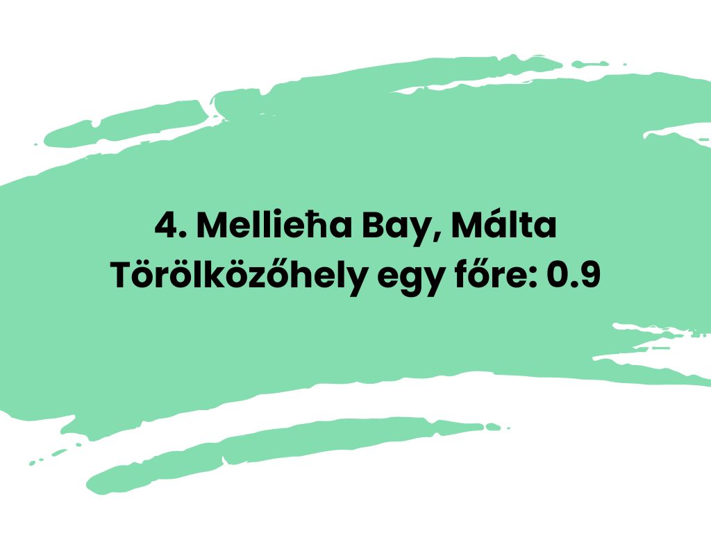 A negyedik legzsúfoltabb tengerpart a vizsgált strandok között Málta legnagyobb homokos strandja, a Mellieħa Bay. Sekély vízű öböl révén tökéletes célpont a családi kirándulásokhoz is, ugyanakkor számítani kell arra, hogy a törölközőnyi helyekért nagy lesz a tolongás.
