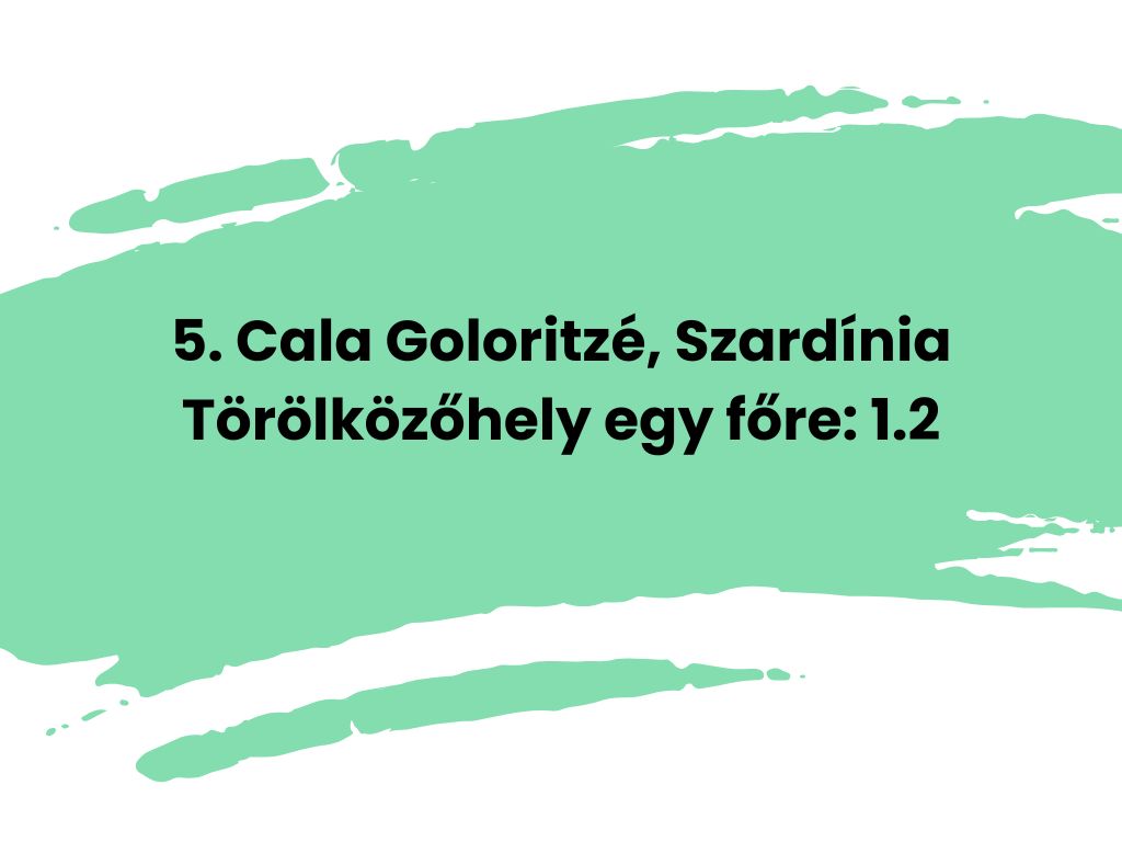 Az ötödik helyre a szardíniai Cala Goloritzé strandot rangsorolták, ami kristálytiszta tengerével, festői környezetével, és búvárkodási lehetőségeivel számos turistát vonz, ugyanakkor maga a strand nagyon kicsi, így hamar zsúfolttá válik. A lista további helyezettjei galériánkban.