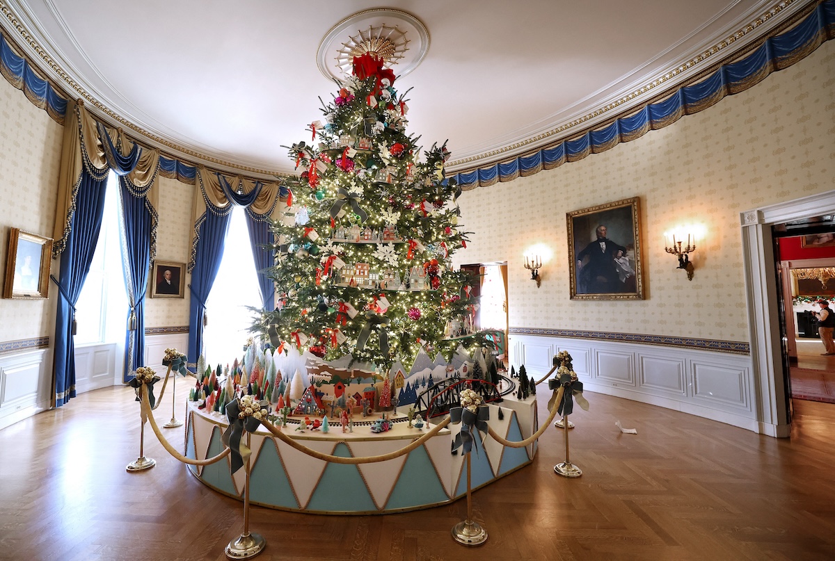 Karácsonyi mesevilággá alakult át a Fehér Ház