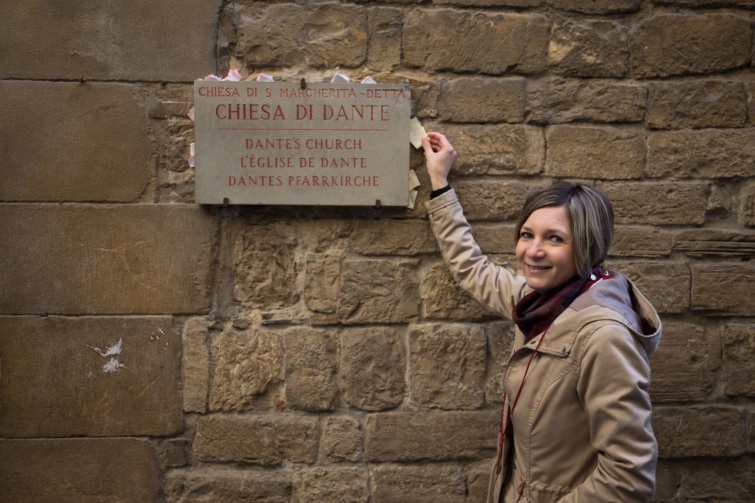 “A turisták, ha Firenzében járnak és útba ejtik Dante templomát, hagynak egy üzenetet a Beatrice sírja előtt elhelyezett kis kosárban. Van, aki átérzi Dante reménytelen szerelmét Beatrice iránt, és azzal a kéréssel fordul hozzájuk, hogy hadd találjon rá az igaz, viszonzott szerelem. Van, aki elvesztette egy szerettét, amit Dante szintén átélt, hiszen Beatrice 24 évesen halt meg valószínűleg gyerekszülésben, így vigasztalást kér, megnyugvást. Volt olyan vendégem, aki beteg gyermekének gyógyulását kérte. Mások önmaguk megtalálását kérték, felidézve az Isteni színjáték első mondatait. “Az emberélet útjának felén egy nagy sötétlő erdőbe jutottam, mivel az igaz útat nem lelém.” Ismerős, ugye? Ma életközepi válságnak neveznénk, de valószínűleg Dante ezt a kifejezést nem ismerte, de tudta miről szól. Sokan, sokféle élethelyzetben vagyunk, így a kéréseink, vágyaink is különbözőek. Ha már megfogalmaztuk, jó úton járunk. Ha megvan, és szeretnéd, küld el nekem privát üzenetben, vagy a poszt alatt hozzászólásban, én összegyűjtöm őket és amint újra kinyit a templom, elviszem és beteszem a kosárba a többi közé.”
