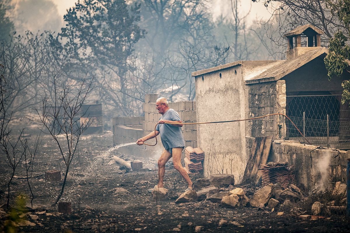 Erdőtűz közelít egy házhoz az Adriai-tenger partján fekvő Grebasticában (MTI/AP/SibenikIN/Mate Gojanovic)