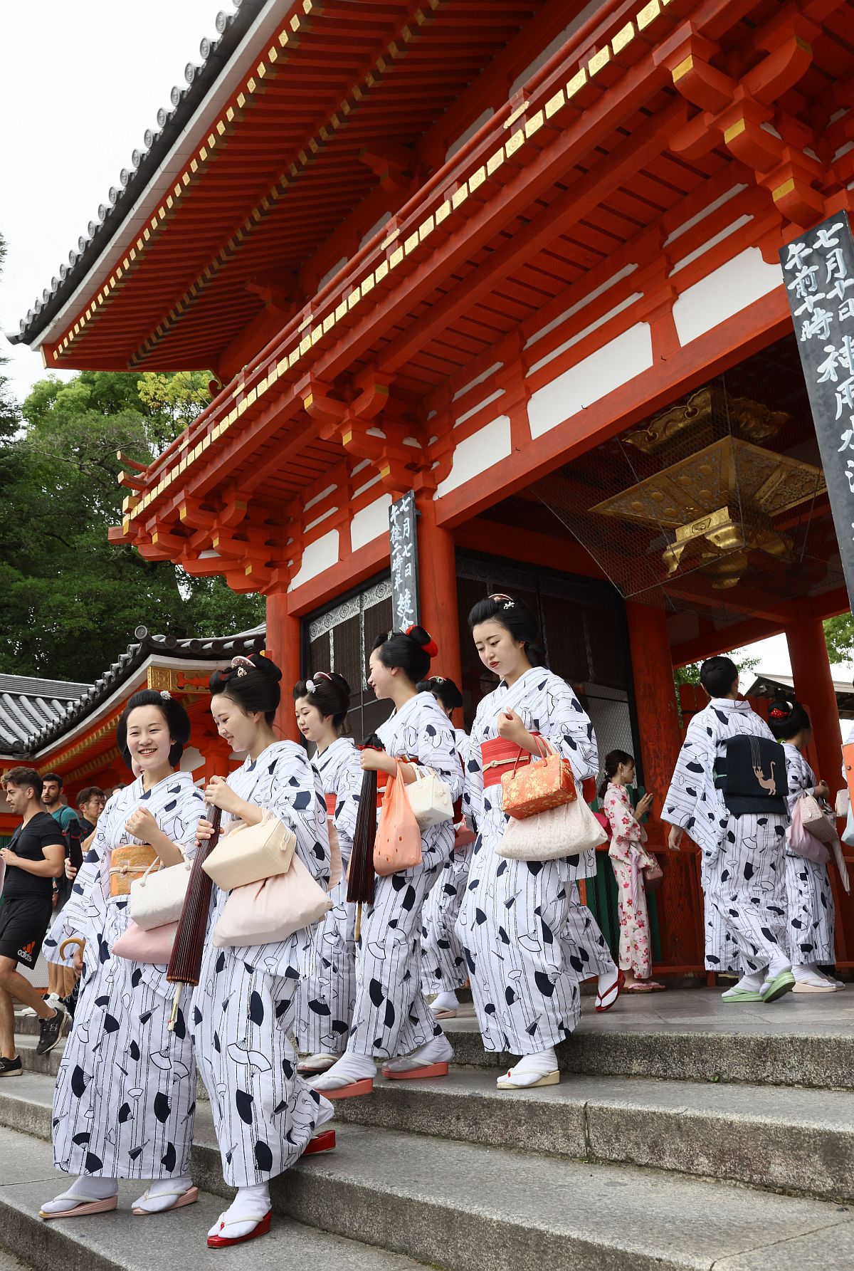 Gion évszázadok óta a Japán hagyományos szórakoztatóművészek központja. A lakók azonban már régóta a turisták tiszteletlen viselkedésére panaszkodnak. Decemberben a kerületi vezetés felszólította Kiotó városát, hogy orvosolja a problémát arra hivatkozva, hagy a negyed “nem vidámpark”.