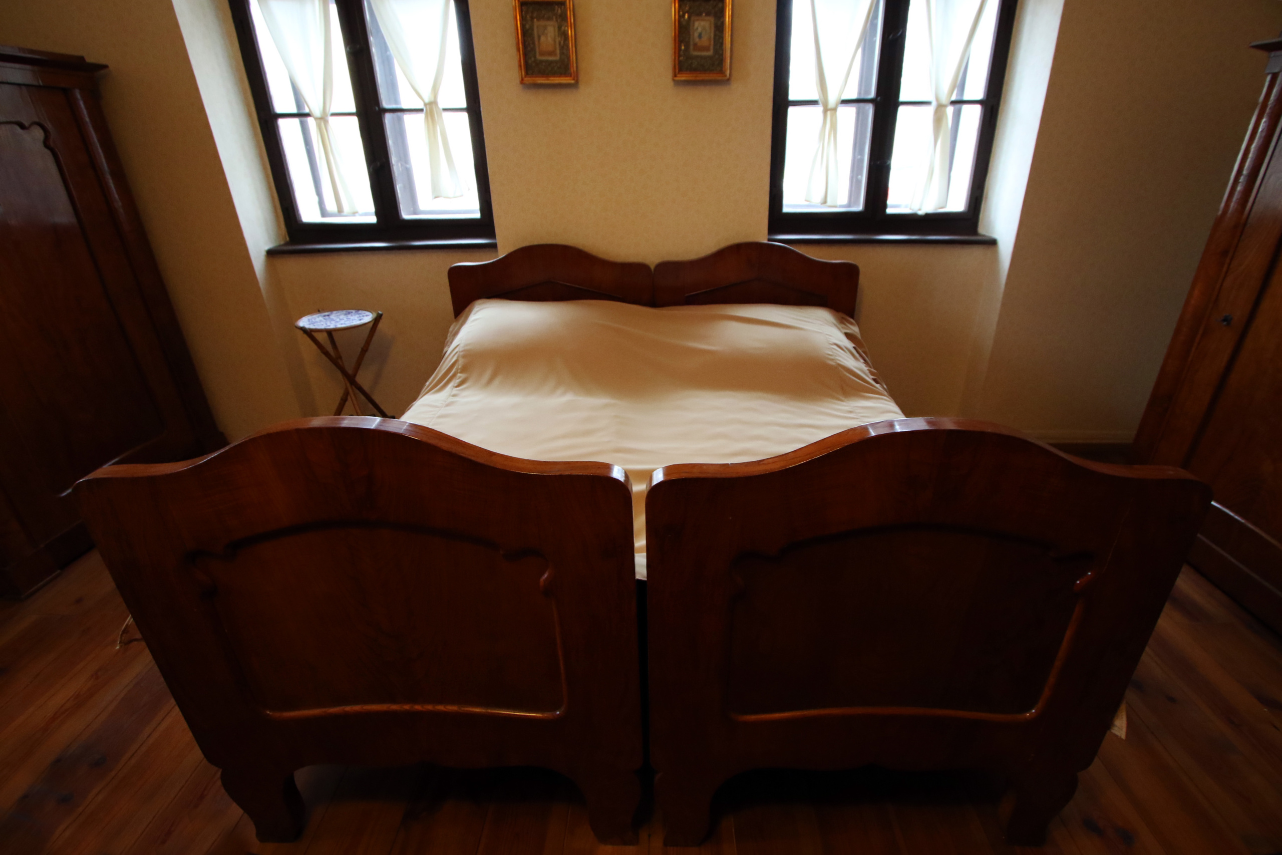 Az L alakú – mai szóhasználattal élve – új építésű épület dupla funkciósnak készült, egyik szárnya tanítói lak, másik szárnya pedig iskola volt, szóval igen, Erkel Ferenc édesapja az ebben az épületben helyet kapó németgyulai katolikus iskola tanítójaként kezdett dolgozni. 10 gyermekük született itt, másodikként Erkel Ferenc 1810. november 7-én, a fotók egyikén látható sarokszobában (az első gyermek Borbála meghalt, így bár Ferenc második, mégis első). Erkel Ferenc gyermekkorát töltötte itt, de utána is még sokáig visszajárhatott, hisz családja egészen 1841-ig lakta az épületet. Ha kíváncsi vagy Erkel Ferenc izgalmas életének további szakaszaira (esküvő, gyermekei születése, budai várnegyedbéli lakása, Operaházi kapcsolódása, stb.), valamint az épület további helyiségeire, itt találod ezeket.