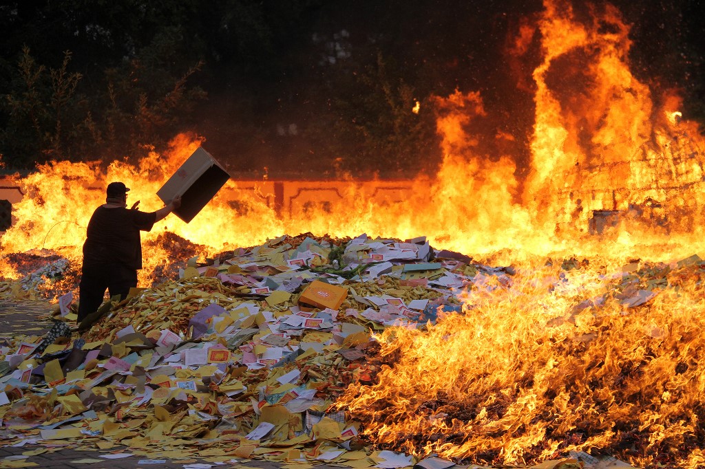 Ezeket rendszerint egyébként óriási mennyiségű, nem valódi pénzzel együtt elégetik, bízva abban, hogy eljutnak a másvilágra. A hiedelem szerint minderre azért van szükség, hogy valamiért kiengeszteljék a holtakat, különben visszatérnek és kísérteni fognak.