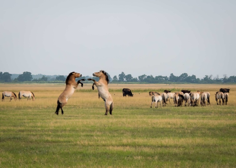 A természetes élőhelyükből kiszorult, de a Hortobágyon egykor honos fajok – mint a farkas, vadló, sakál vagy pelikán – újra láthatók a Hortobágyi Vadasparkban. A parkban ősi pusztai állatok és a mai védett fajok is otthonra találtak. A Hortobágy-Máta környékén induló másfél órás fogatozás során testközelből láthatjuk a rackajuhokat, szürkemarhákat, mangalicákat, bivalyokat, és a puszta ikonikus figuráit: a csikósokat. A pusztaötös bemutatón lenyűgöző ember-ló összhangnak lehetünk tanúi.