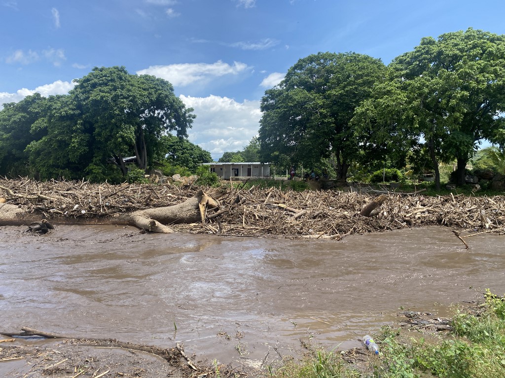 A Beryl hurrikán átvonulását követő heves esőzések miatt megduzzadt folyó a Cumana és Cumanacoa közötti országúton, Sucre államban, Venezuelában, 2024. július 2-án. Fotó: Victor GONZALEZ / AFP