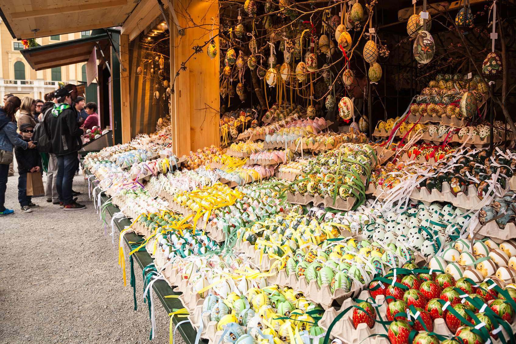 Bécs, Ausztria: A bécsi húsvéti vásárok közül a Schönbrunni kastély mellett található a legkedveltebb. Itt többezer kézzel festett húsvéti tojás, bécsi porcelán és különleges üvegdísz várja a látogatókat. Kihagyhatatlan fogások a kaiserschmarrn (császármorzsa), osterpinze (húsvéti kalács) és a legendás Sachertorte. Fotó: Getty Images