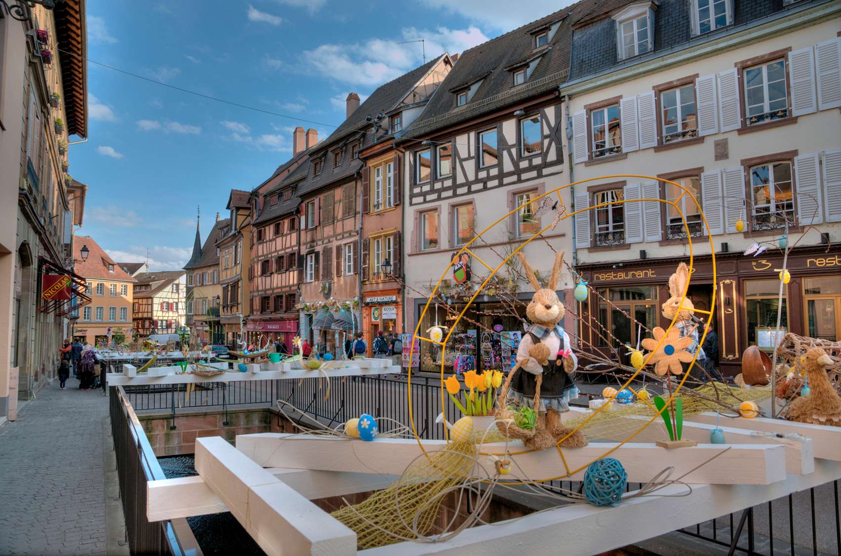Colmar, Elzász: Franciaország Colmart gyakran nevezik "kis Velencének", köszönhetően csatornáinak és mesébe illő óvárosának. Az Elzász régió északkeleti részén található kisváros jól megőrizte középkori építészeti örökségét. A húsvéti vásár két különálló területen zajlik, emellett egy mini állatfarm és kézműves bódék is színesítik a programot. Kapható termékek: elzászi kerámia, fából készült húsvéti díszek és kézzel készített csipkék. Kuriózumnak számít az elzászi pizza és az édes briós. Fotó: Getty Images