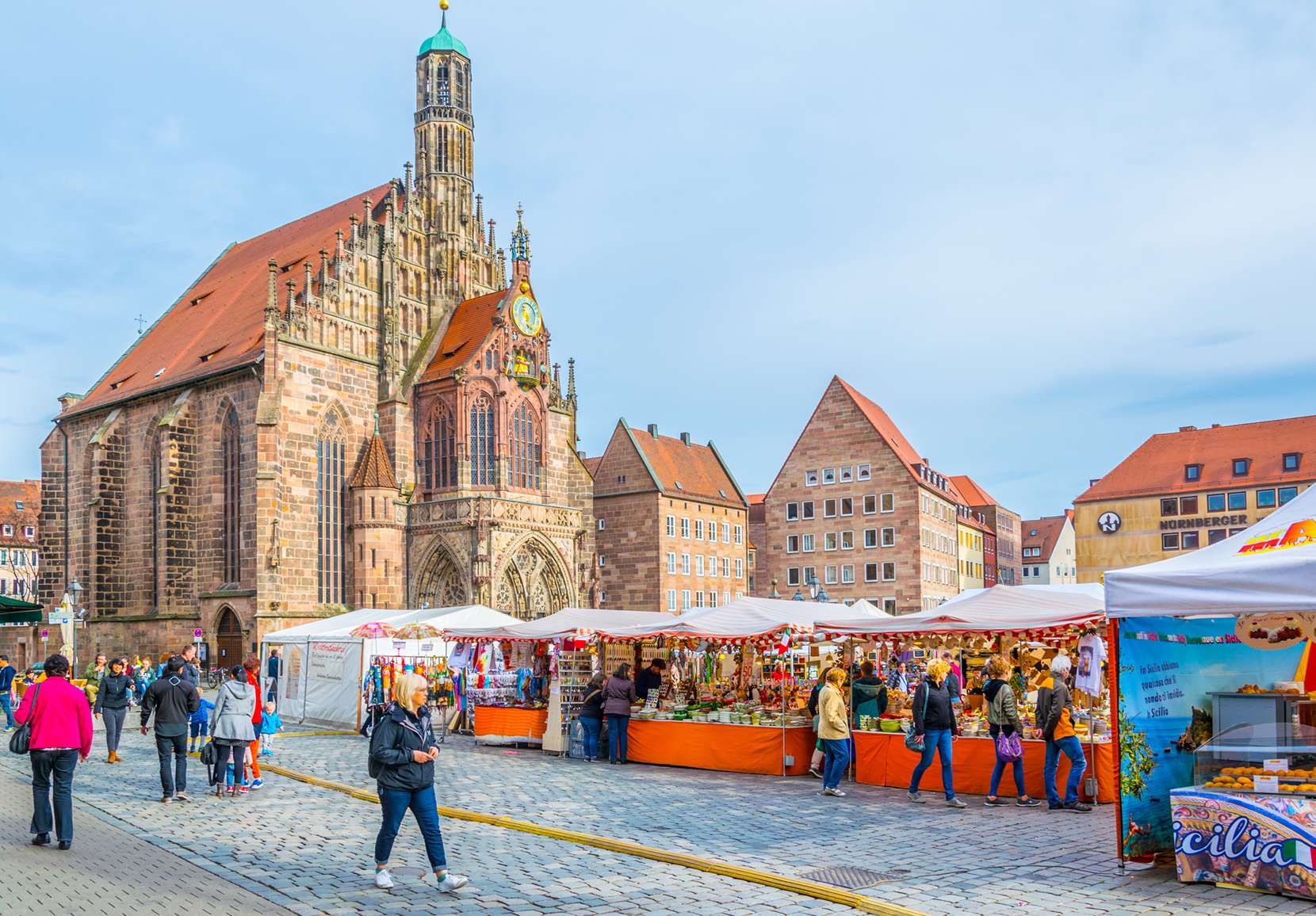 Nürnberg, Németország: A Nürnbergi Húsvéti Vásár Németország egyik legrégebbi tavaszi vására, gyökere egészen a 15. századig visszanyúlik. A Hauptmarkt téren rendezik meg, és húsvéti kézműves termékeket, regionális finomságokat és bajor hagyományokat vonultat fel. A helyi termékek közé tartoznak a kézzel készített fa játékok, a porcelán húsvéti díszek és a hagyományos frankföldi kézműves termékek. Húsvéti kenyeret, mézeskalácsot és grillezett kolbászkákat is kóstolhatunk. Fotó: Getty Images