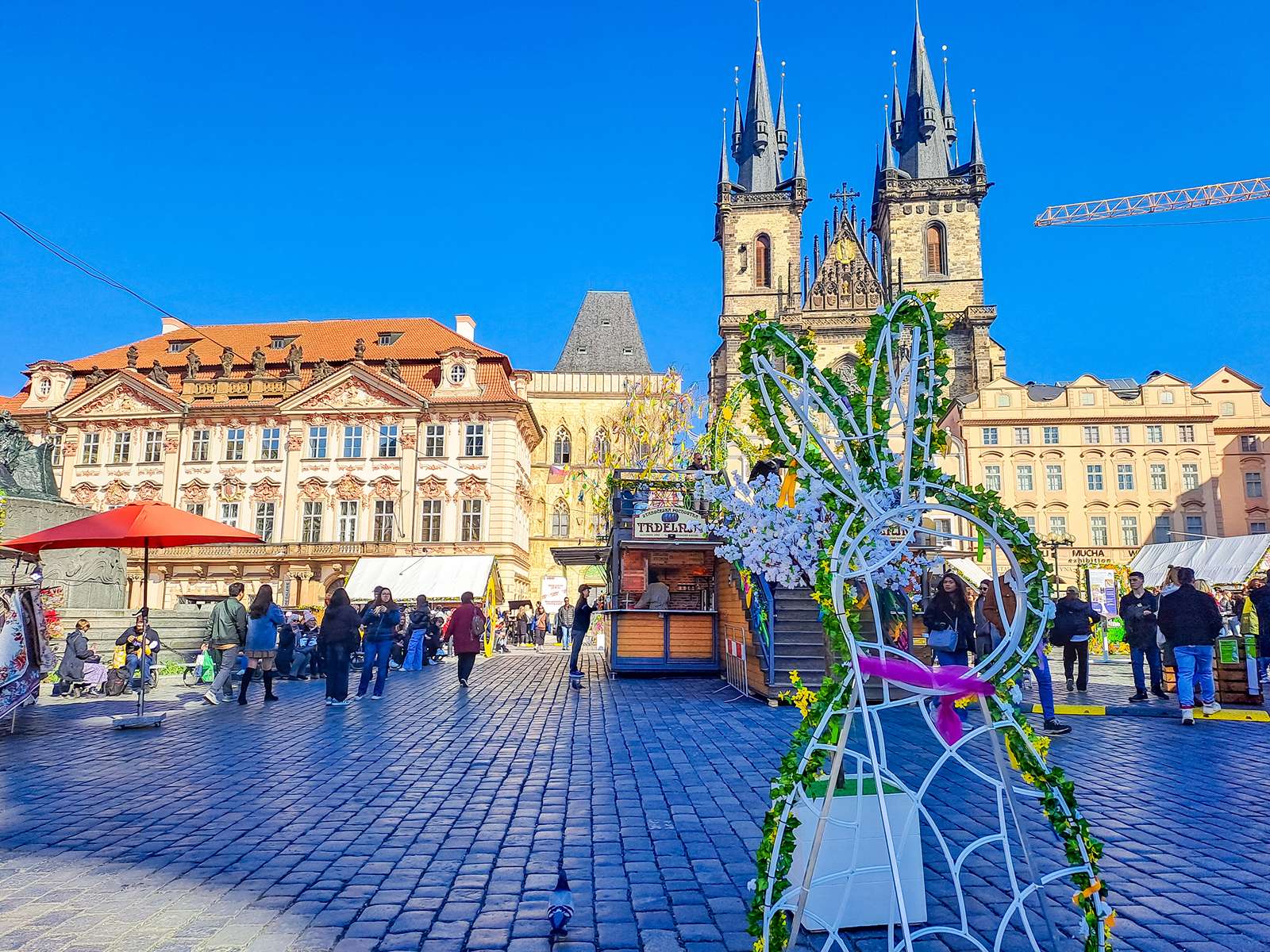 Prága, Csehország: Prága húsvéti vásárát az Óváros téren rendezik meg. A kézműves termékek közül kiemelkednek a kézzel festett kraslice tojások, a fa bábfigurák és a prágai kristálytermékek. Érdemes megkóstolni a helyi kalácsot, a cseh kolbászokat és mazánecet, ami egy jellegzetes húsvéti édes kenyér. Fotó: Getty Images