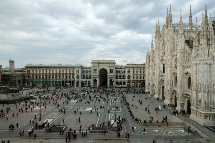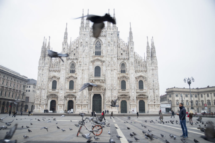 A Culture Trip szerint évente több mint ötmillió ember látogat el a milánói dómhoz, hiszen ez a város egyik ékköve. 2018 áprilisában elég sokan voltak a téren /Fotó: Getty Images2020 februárjában már szinte csak a galambok csodálják a nevezetességeket, embert csak elvétve lehet látni / Fotó: Getty Images