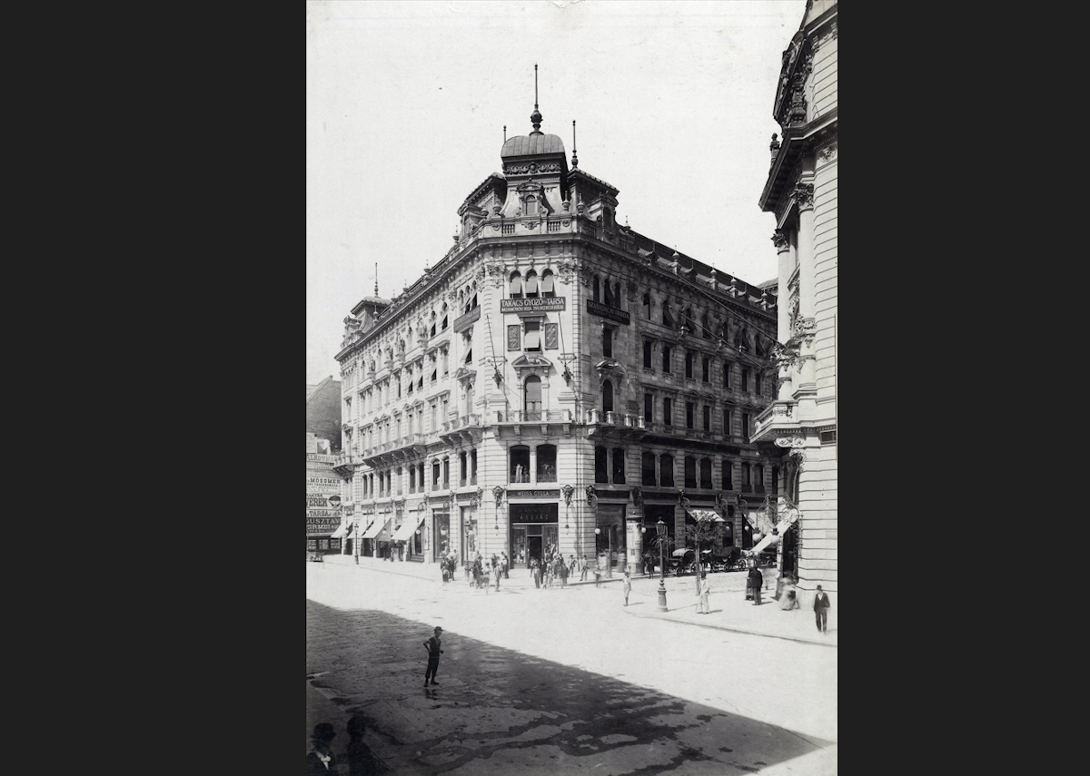 A mai Oktogonnál állt egykor, a helyére felhúzott épület látható a képen