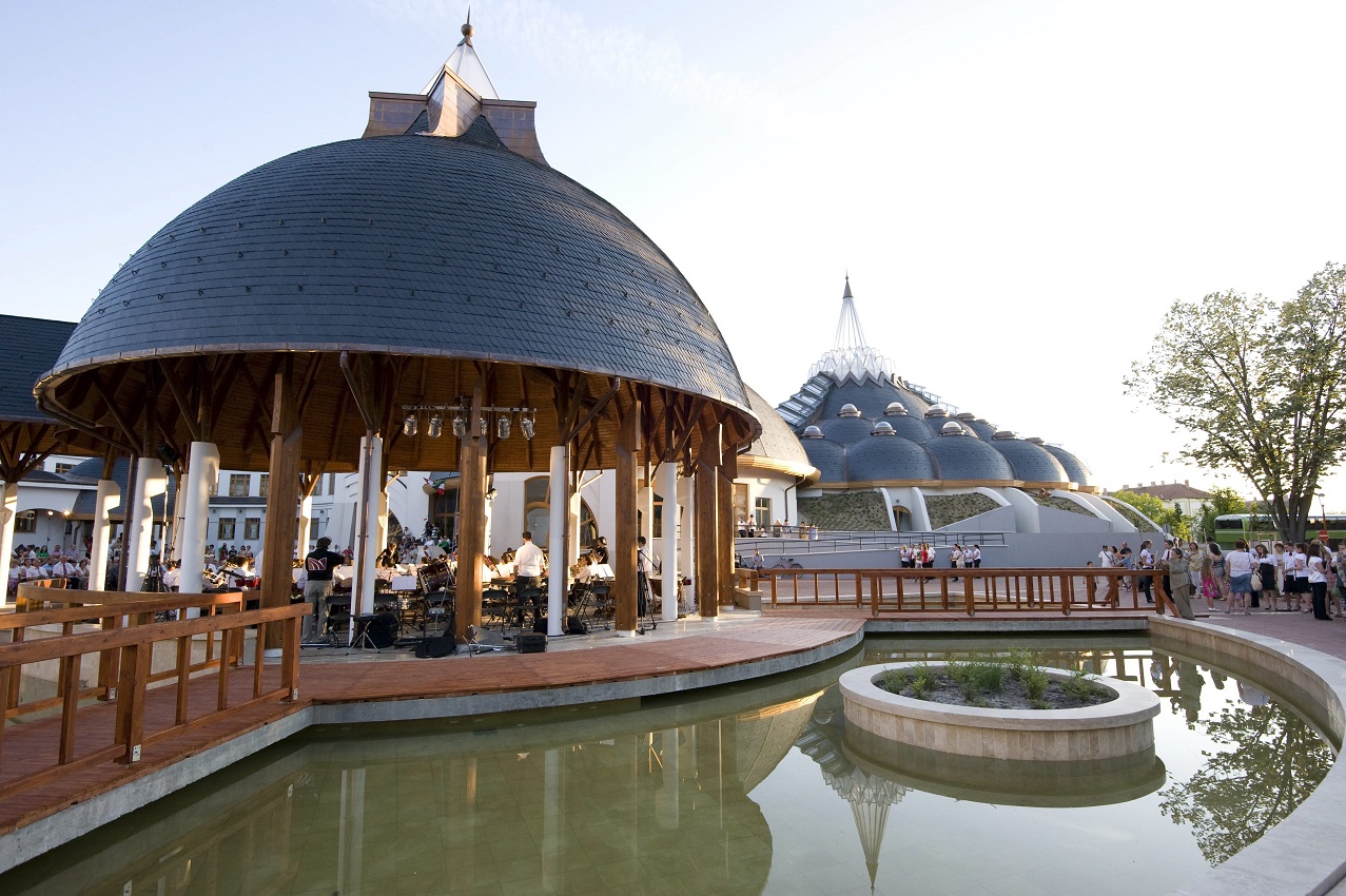 A Maros jobb partján fekvő város főként a hungarikumnak számító makói hagymáról ismert, meg persze a különleges termálvizéről, melyet 1956-ban juttattak felszínre a fúrások. A víz jótékony hatásait a Hagymatikumban lehet kiélvezni – a nem mindennapi épület Makovecz Imre utolsó és egyben legnagyobb alapterületű munkája, ami elé épült a képen látható zenepavilon. További aktív kikapcsolódást nyújt a makói lombkoronasétány: Magyarország második ilyen létesítményeként az ártéri környezet és élővilág bemutatására szolgál. Egy gondolat erejéig vissza a hagymákhoz: Makón nemcsak a Hagymatikum fürdő, hanem Hagymaház és Hagymavirág szökőkút is található. Múzeumok közül a József Attila Múzeumot emelnénk ki, ami állandó és időszaki kiállításokkal, szabadtéri néprajzi kiállítással, kút-múzeummal várja az érdeklődőket.