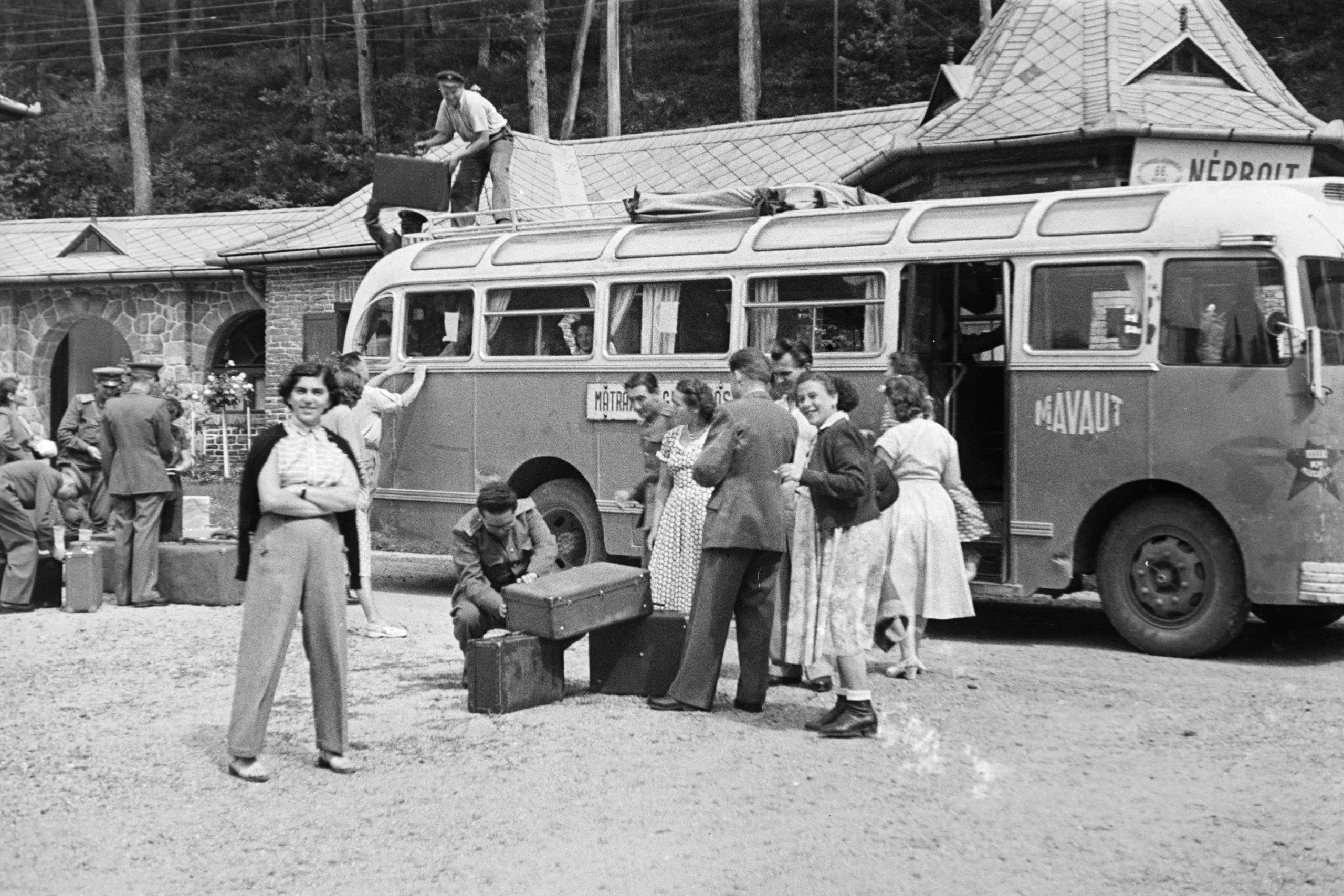 Mátraháza előtt a 24-es úton, 1955 -ben. Fotó: Fortepan / Szent-Tamási Mihály
