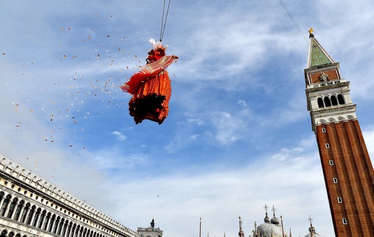 Majdnem százezren érkeztek Velencébe a Szent Márk téri harangtorony tetejéről leereszkedő angyal, vagyis a város legszebb lányának repülésére. A volo dell’angeló során egy angyalnak öltözött fiatal nő a 99 méter magas toronyból egy drótkötél segítségével siklott le a térre, miközben konfettit szórt az ünneplő tömegre.