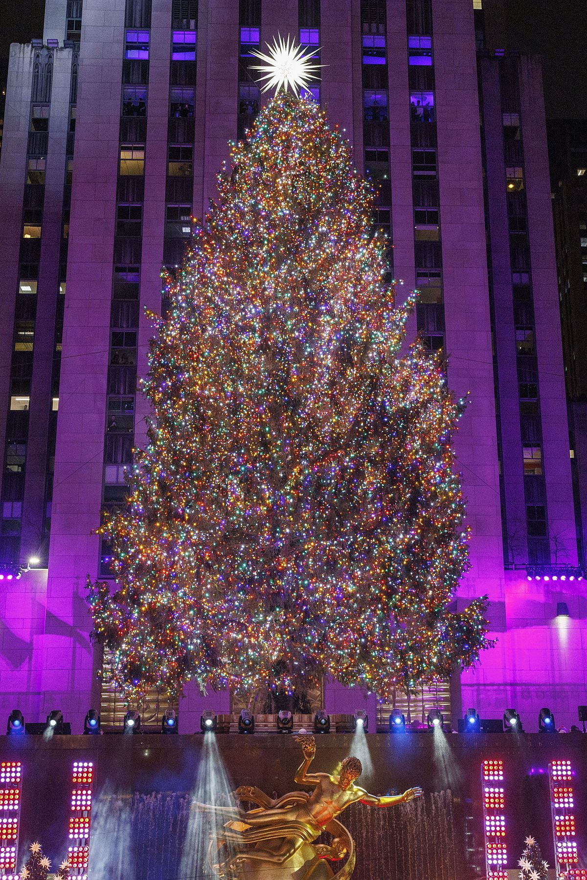 A New York-i Rockefeller Központ előtt idén egy 24,38 méteres karácsonyfa díszeleg.