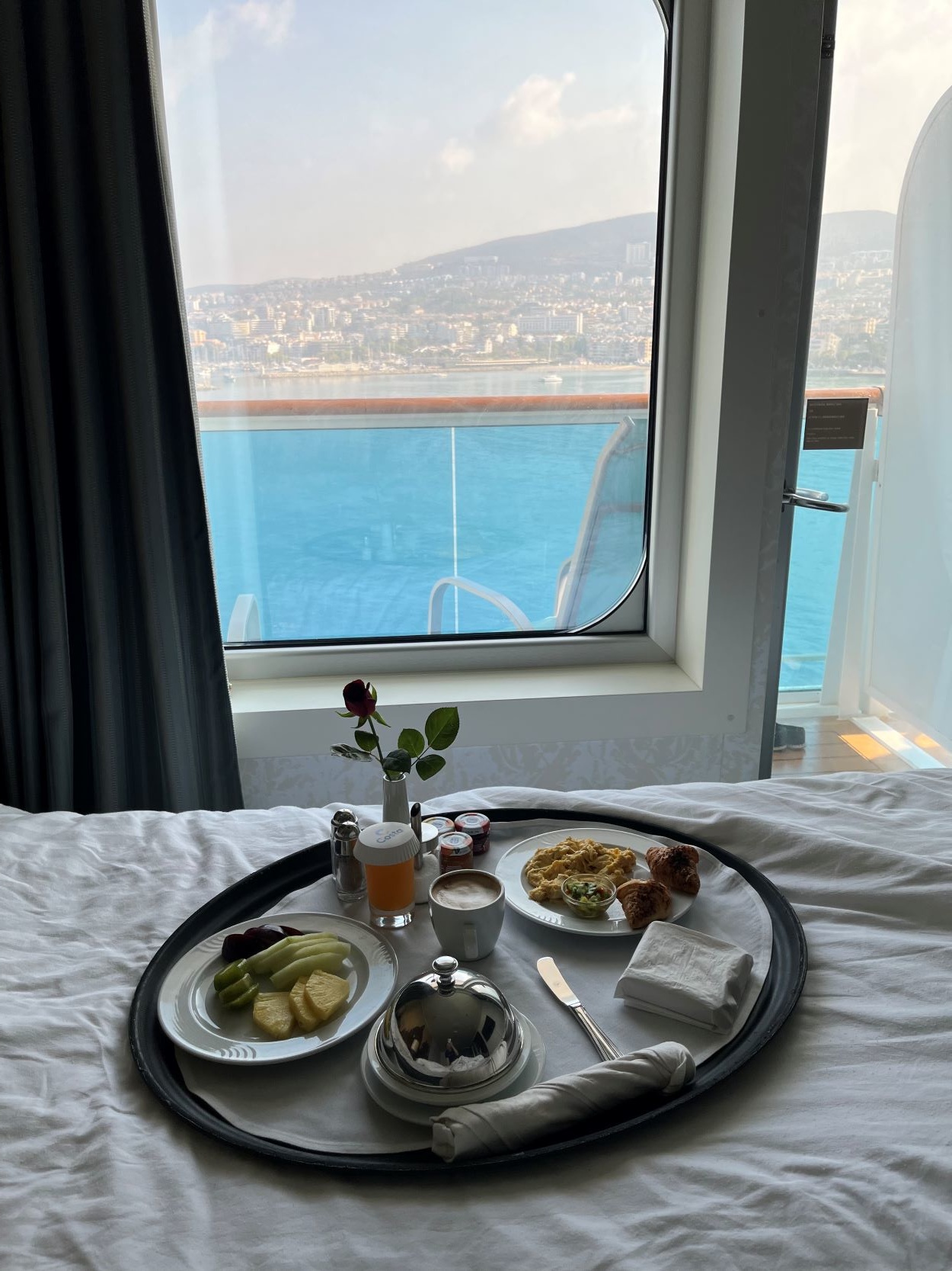 Személy szerint a kedvenceim a hajózásban a kiváló, fine dining jellegű vacsorák voltak. Az ültetett éttermekben (tehát nem a svédasztalos büfében) minden este négyfogásos vacsorát tálalnak fel, minden fogásnál legalább három különböző variáció közül lehet választani. Egy hotelben sem ettem még olyan finom ételeket, mint a hajóutakon.