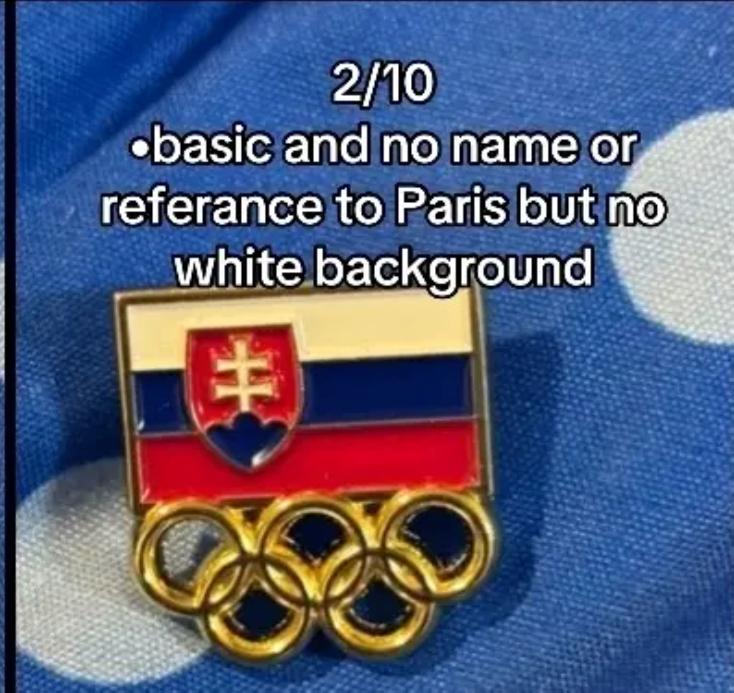 A szlovák kitűző 2 pontot kapott Schofieldítől. "Közönséges, és nincs ráírva, hogy a párizsi Olimpiára készült", írja. Forrás: TikTok / @jasmine_schofield