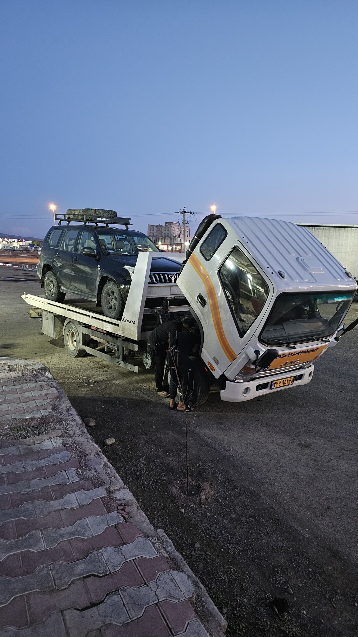 Nem is nagyon ismerik a dízel autókat, így az első lerobbanás után hamarosan újra megállt az autó: a kutas nekik is reflexből benzint tankolt. Ez már valahol félúton Tebriz és Teherán között történt, a kiérkező autómentő visszaindult velük Tebrizbe, de ez a jármű is lerobbant. A mentés végül 10-12 óráig tartott, hívni kellett egy másik autómentőt. A várakozás mégis jó hangulatban telt: az egyes számú autómentősök diszkóhangulatot csináltak a villogóval és hangos zenével, így mindenki jól érezte magát a körülmények ellenére is.