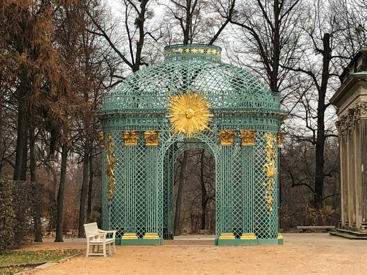 Sans souci – gondtalanul – jelenti a szó, amelyről Nagy Frigyes híres palotája a nevét kapta. A porosz király olyan helyre vágyott, ahol távol maradhat az államügyektől és közel kerülhet az általa oly nagyra becsült művészetekhez, filozófiai gondolatokhoz. A márványba, növényi ornamentikába, festményekbe burkolt egyszintes palota emberközelibb, mint Versailles. Érződik, hogy a helyiségek is a célt szolgálják, gondtalan pihenést kínáltak Frigyes és a vendégek (többek között az olyan barátai, mint Voltaire) számára is.
