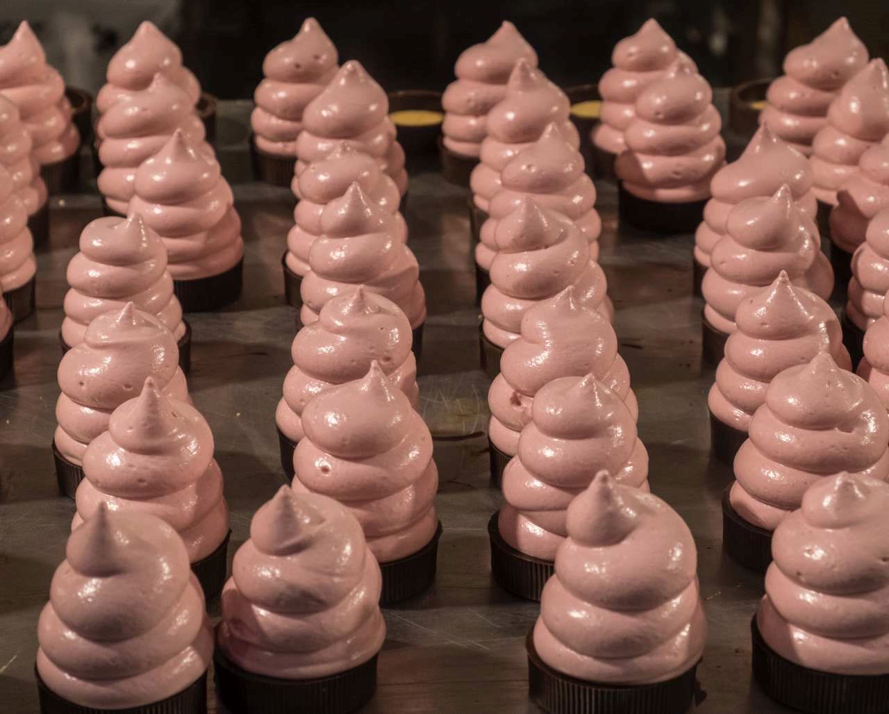 az esőerdők védelmét szolgáló táblás csokoládét Afrikából, csokis sört, a Fekete-erdő torta ízvilágát egyetlen pralinéba sűrítve, a híres sváb Maultaschent marcipánból és nugátból elkészítve, a még híresebb frank hólabdát csokiba mártva.