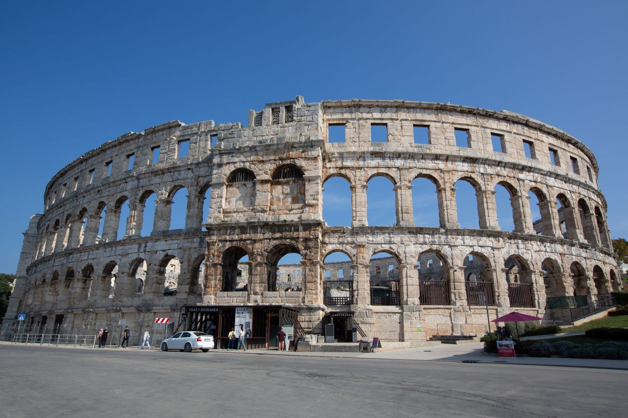 A pulai amfiteátrum a hatodik legnagyobb a világon, és Vespasianus császár uralkodása idején, a Kr.u. I. században épült – a híres római Colosseummal egy időben. Az arénában annak idején gladiátorviadalokat rendeztek, ma pedig koncerteknek és filmvetítéseknek ad otthont. Hozzá kell tenni, hogy a turistáknak még ma is tartanak „gladiátorviadalokat” az amfiteátrumban, hogy megmutassák, hogyan nézett ki régen az Aréna valósága. Az épületbe a belépőjegyek ára 10 euró, a diákok 50 százalékos kedvezményt kapnak.