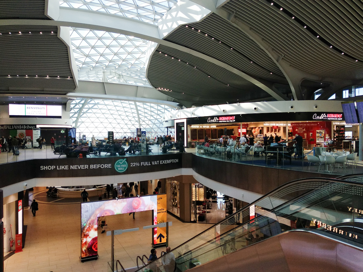 De szerepet játszott az értékelésben a felújított 1-es terminál is, ahová a korábbinál sokkal több természetes fény jut be, ráadásul számtalan műalkotással is találkozhatnak az utasok. Mindemellett helyet kaptak Olaszország legnépszerűbb márkaboltjai, például a kalapokat áruló Borsalino, a kézitáskáiról híres Furla, vagy fürdőruhákat árusító Villebrequin. De van itt élelmiszerbolt és persze hagyományos olasz pizzát is fogyaszthatunk.