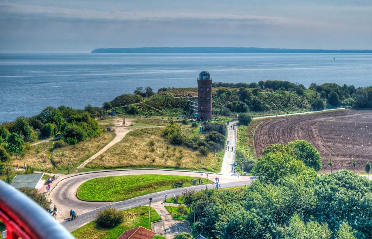 A Kap Arkona egy olyan fennsík, amelyet 43 méter magas sziklafal határol a tenger felől, ezt azonban nem is sejtheti az, aki kiszáll az autójából. Miután gyalog, kerékpárral vagy kisvonattal nekivág, hogy megközelítse a Kap Arkona világítótornyait, egyszer csak érzékeli, hogy a végtelen tenger felett áll. Világvége-hangulat, legalábbis én így éreztem.