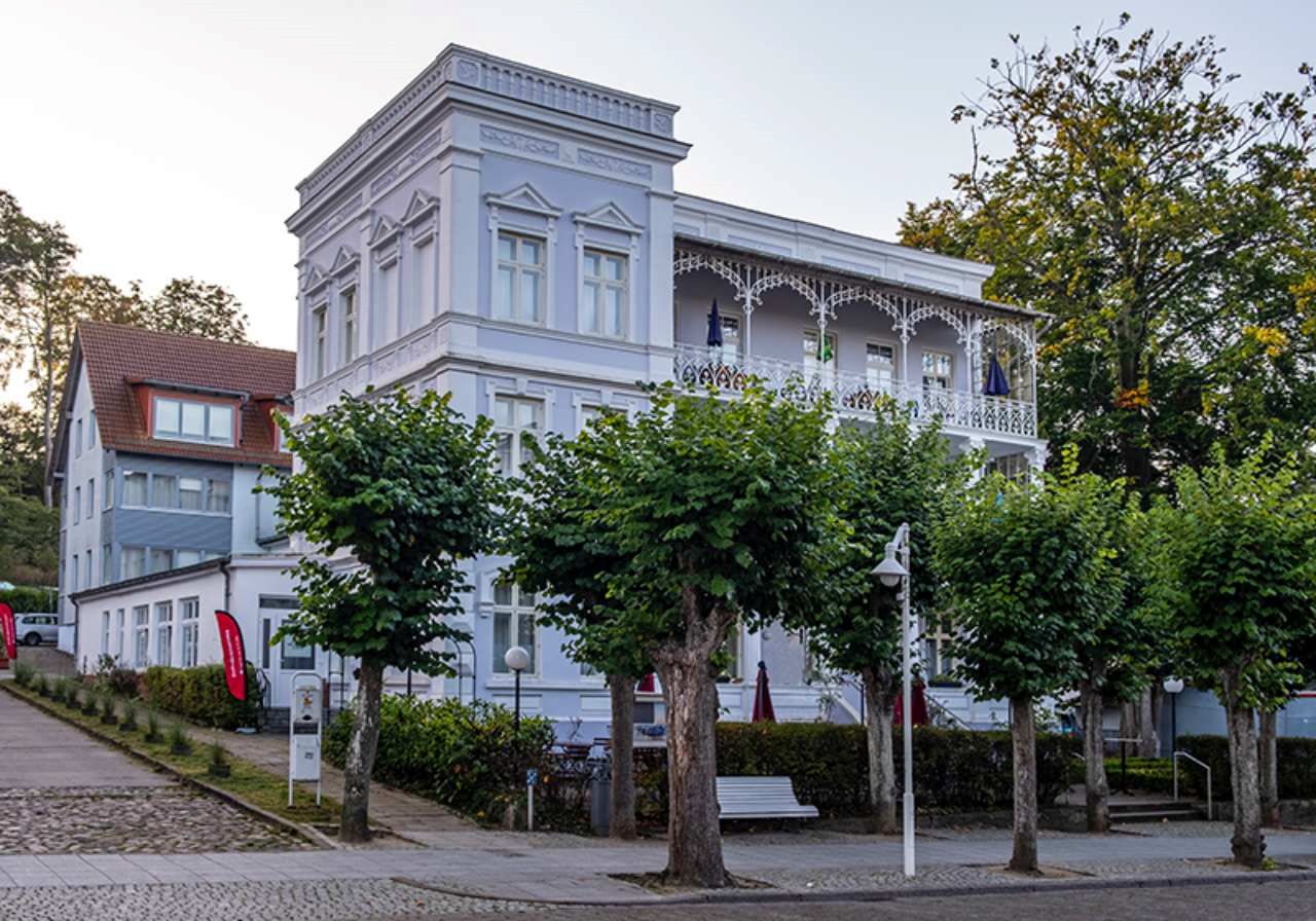 Rügen építészetében még itt-ott fellelhető az egykori NDK hatása, de egyre erősebb a sziget másik, még a 19. századi időkből származó arculata, amely egy gazdag, tengerparti fürdőváros hangulatát varázsolja lépten-nyomon a szemünk elé. A faragott, fehér erkélyekkel díszített épületek az ívelt formáikkal, a nyitott, de széltől védő kilépőkkel, tornyokkal bájos egységet alkotnak.