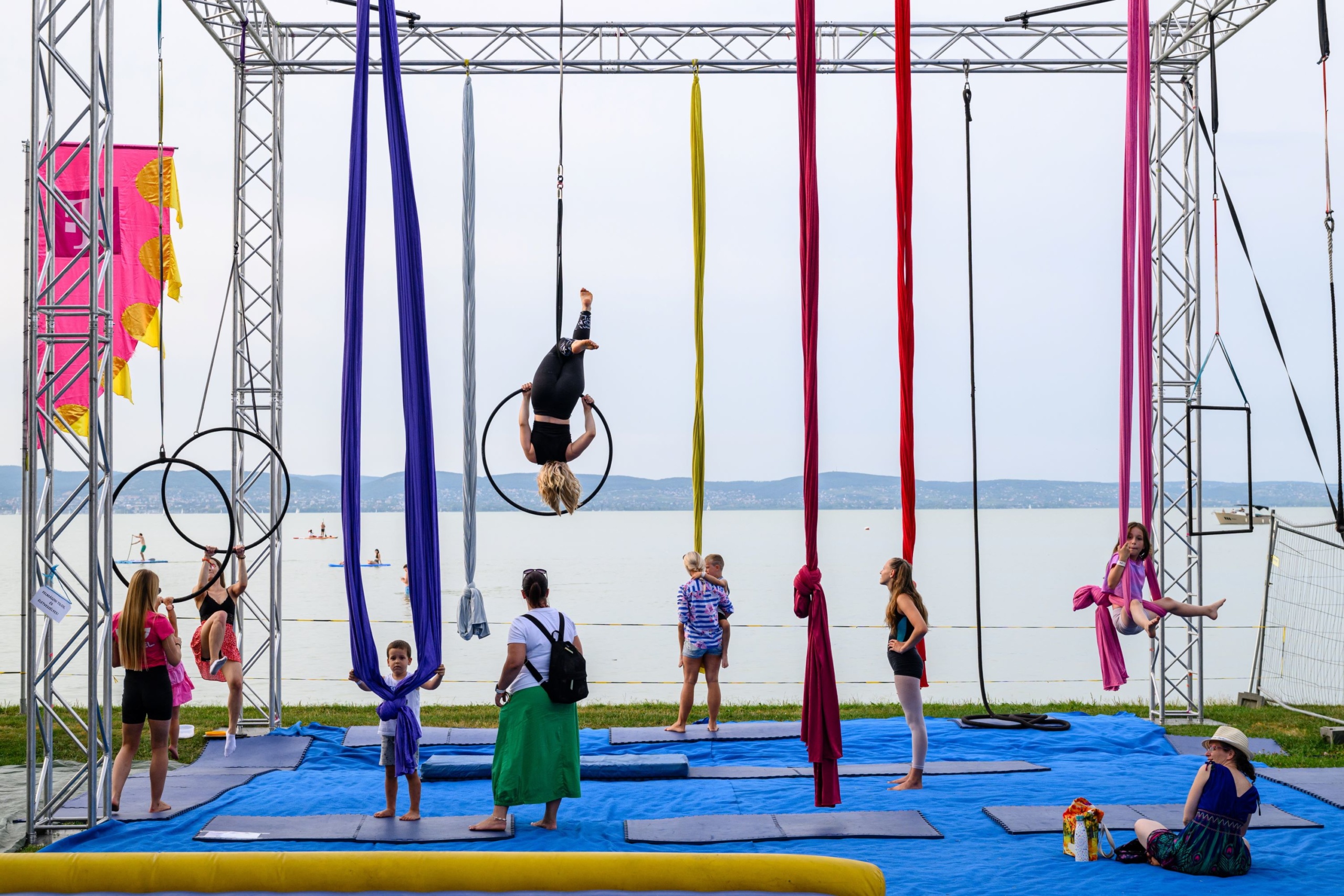 A résztvevők kipróbálhatják magukat a cirkuszi mutatványokban is. Fotó: MTI / Vasvári Tamás