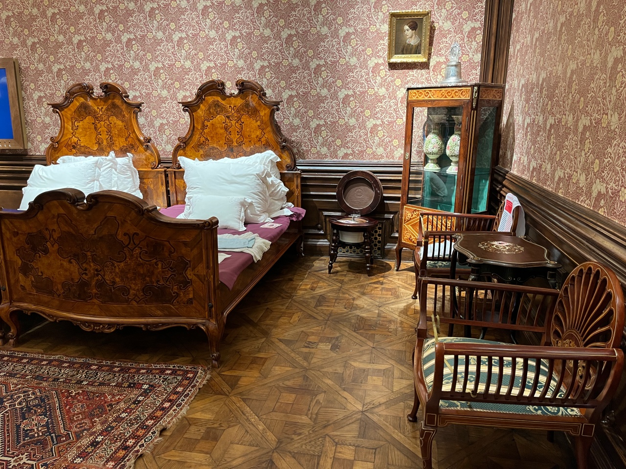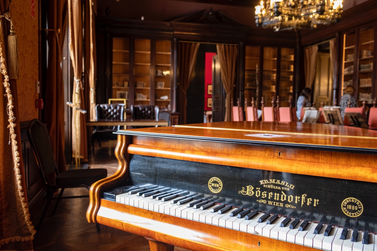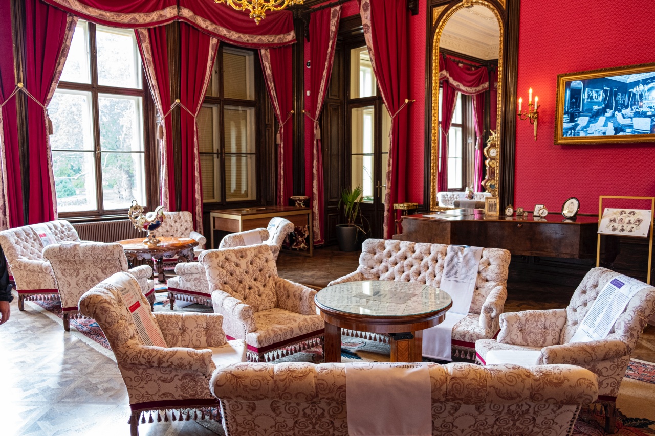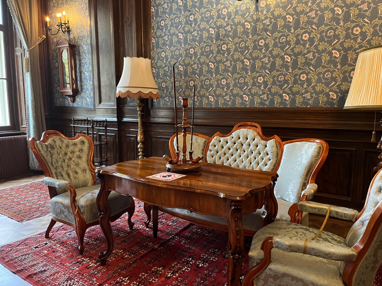 Nem tudtam felidézni a kastély harmincöt évvel korábbi előcsarnokát, ahol a ballagó diákok karjukon virággal köszöntek el az itt töltött évektől, de talán jobb is, mert így rögtön Wenckheim Krisztina Ybl Miklós által formába öntött álmába csöppentem. Tisztelet a felújítást vezető személyeknek, mert a rendelkezésre álló kevés információ és a még kevesebb megmaradt eredeti belső enteriőr ellenére visszavarázsolták a 19. század második felét.