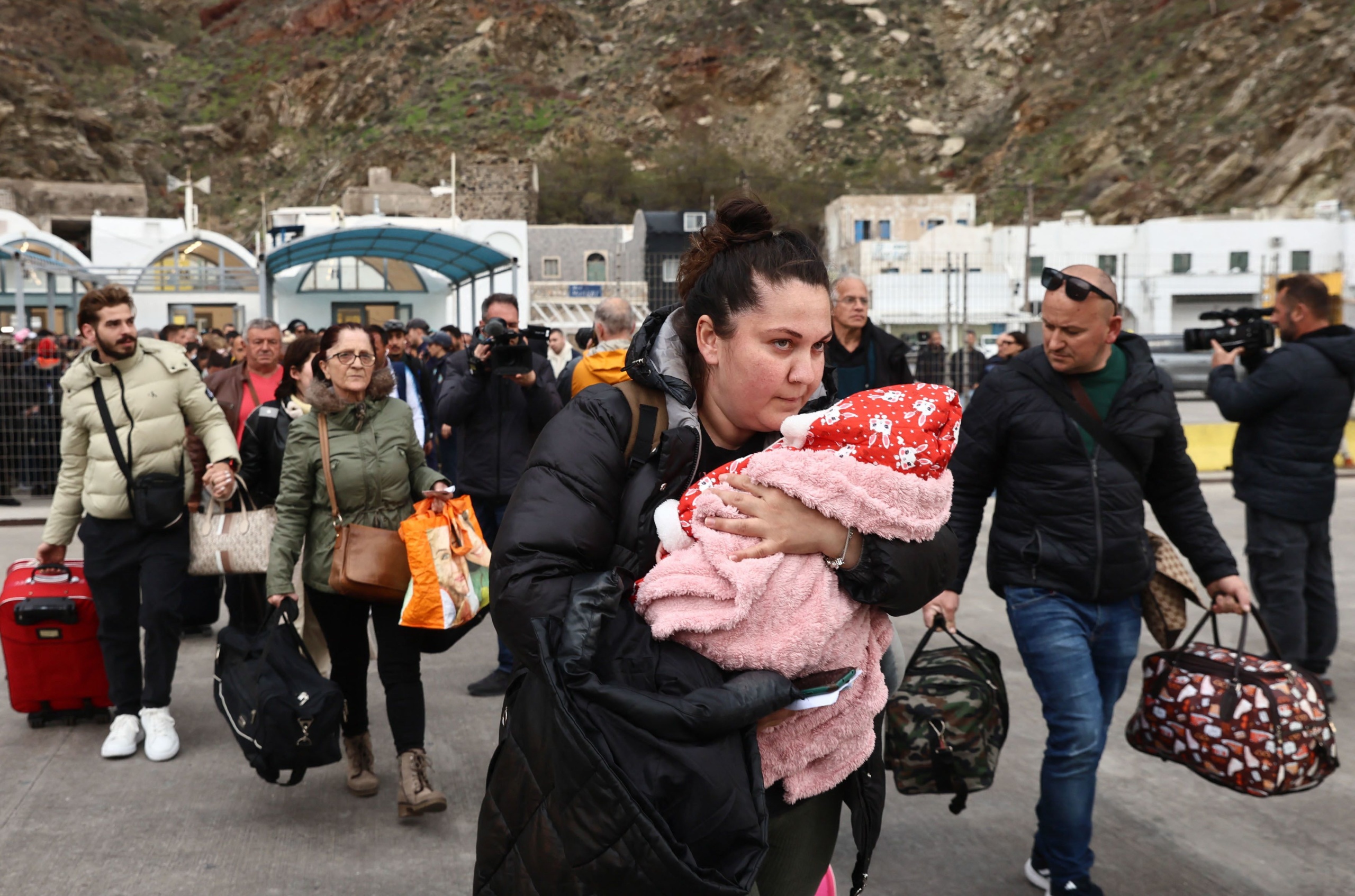 Több százan hagyták el komppal Szantorini szigetét. Fotó: AFP