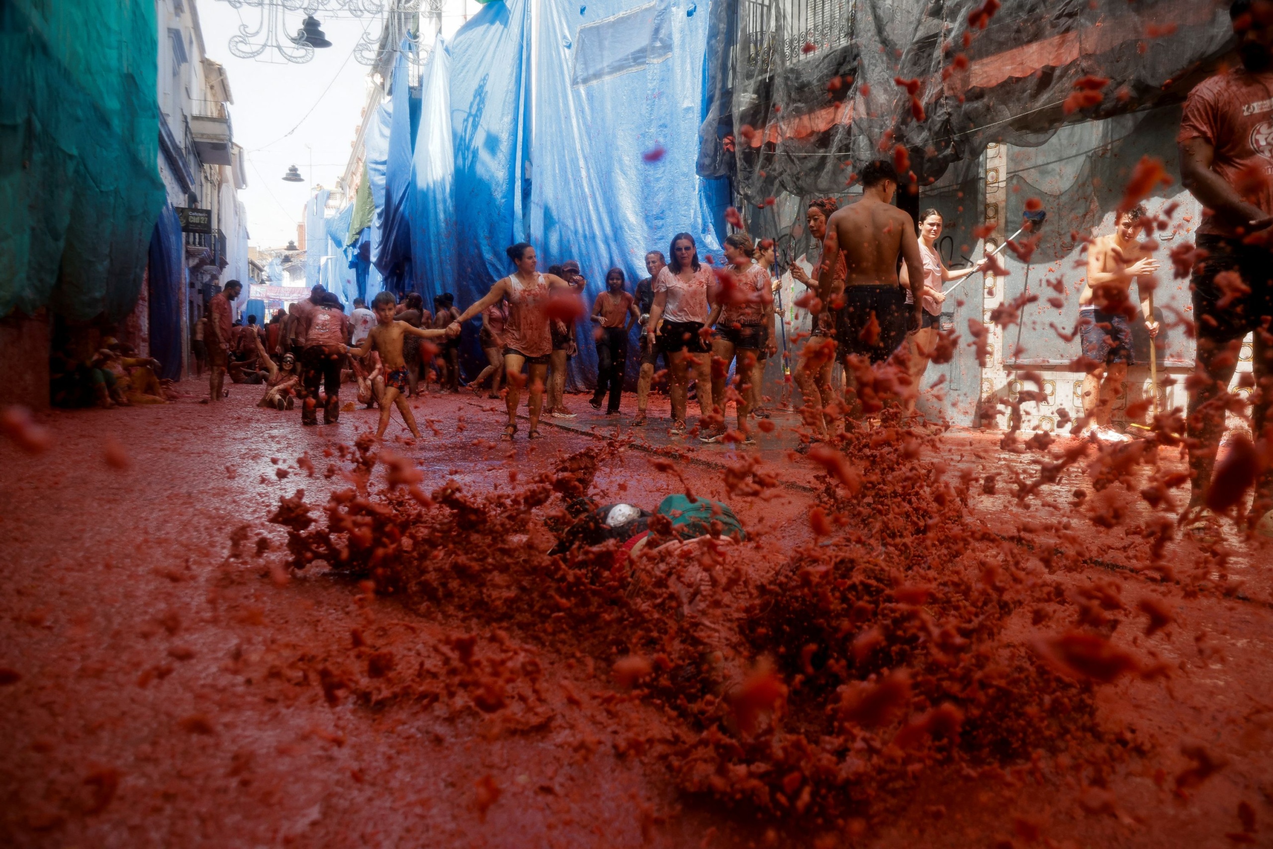 Bámulatos, vérvörös fotók: ezrek dobálták egymást paradicsommal az őrült spanyol fesztiválon