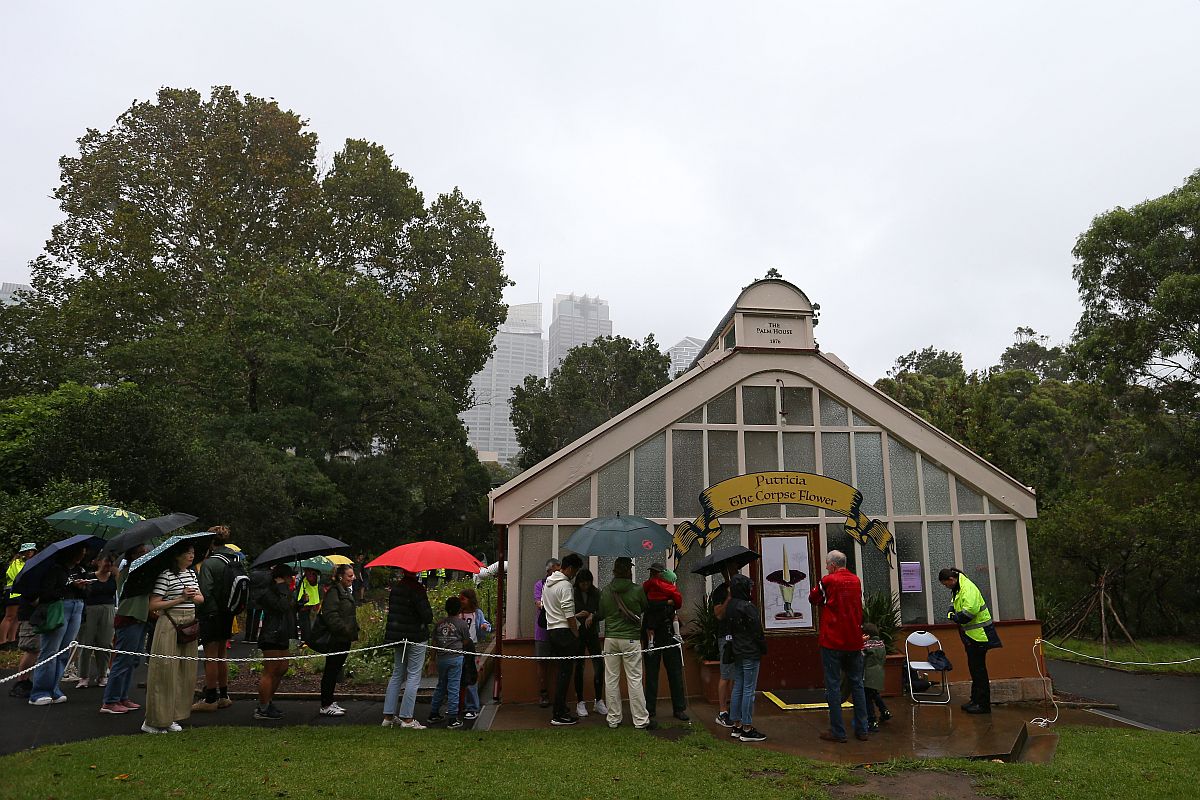 Több ezren álltak sorba a sydneyi Királyi Botanikus Kert jegypénztárainál helyi idő szerint csütörtök délután, hogy szemtanúi legyenek egy különleges, a rothadó hús szagát árasztó növény évek óta várt virágzásának.