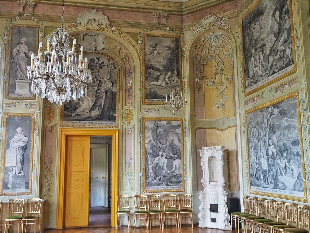 De még ennél is szebb látvány vár az emeleten a látogatóra: itt van ugyanis a kastély ékessége, a díszterem.