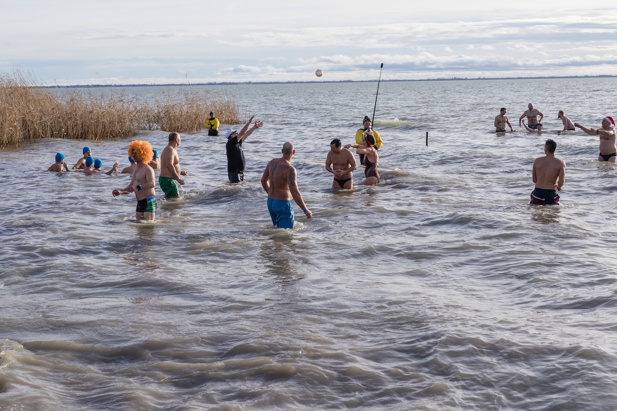 Hagyományos újévi fürdőzést tartottak január 1-jén a mindössze 3 Celsius-fokos Balatonban a szigligeti strandon. Az eseményen több százan vettek részt.