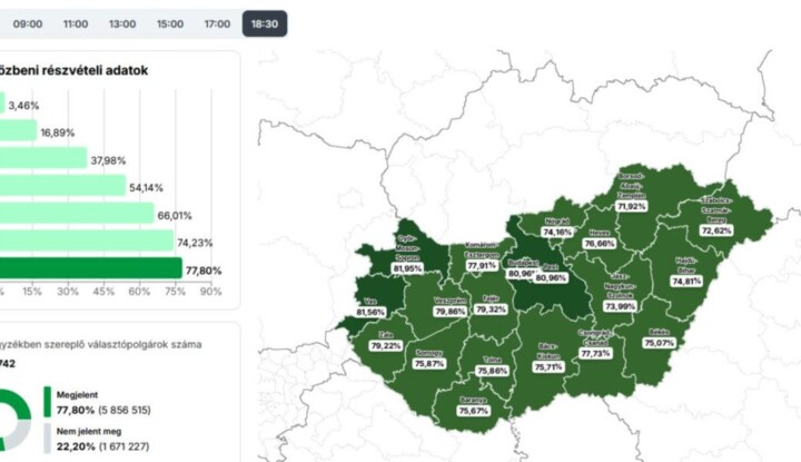 A 18.30-as adatok alapján a részvétel 77,8 százalék volt, ami ebben az időpontban eddig példa nélküli.