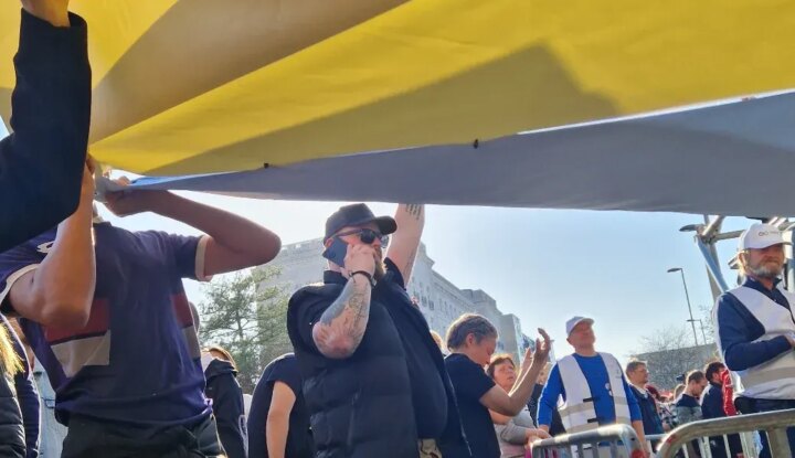 A lap úgy tudja, a Fidesz kampányában szerepet kapó céghez köthető ötlet lehetett, hogy ukrán zászlót feszítsenek ki a tiszás tömegben.