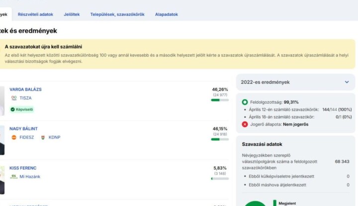 hu szerint újraszámolják a szavazatokat a keszthelyi egyéni választókerületben, mert az első két helyezett között 100-nál kevesebb voks a különbség.
