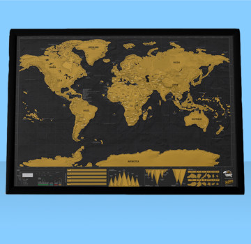 Számos méretben és stílusban lehet kapni az ajándékboltokban olyan térképeket, amelyeken a nagy utazók lekaparhatják, és ezzel megjelölhetik azokat az országokat, ahol már jártak.