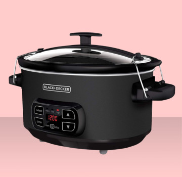 A másik óriási kedvencünk a Black + Decker 7-Quart lassú főzője, aminek két oldalsó pattintója garantálja, hogy a fedő stabilan rögzüljön az edény tetején, vagyis egy hirtelen felindulásból elkövetett odébb tolásból vagy megemelésből sem lehet semmi probléma.