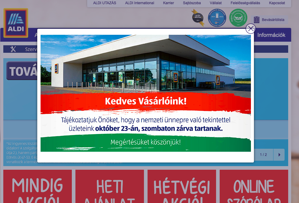 Az Aldi oldalára lépve ez a figyelmeztetés fogadja a vásárlókat: