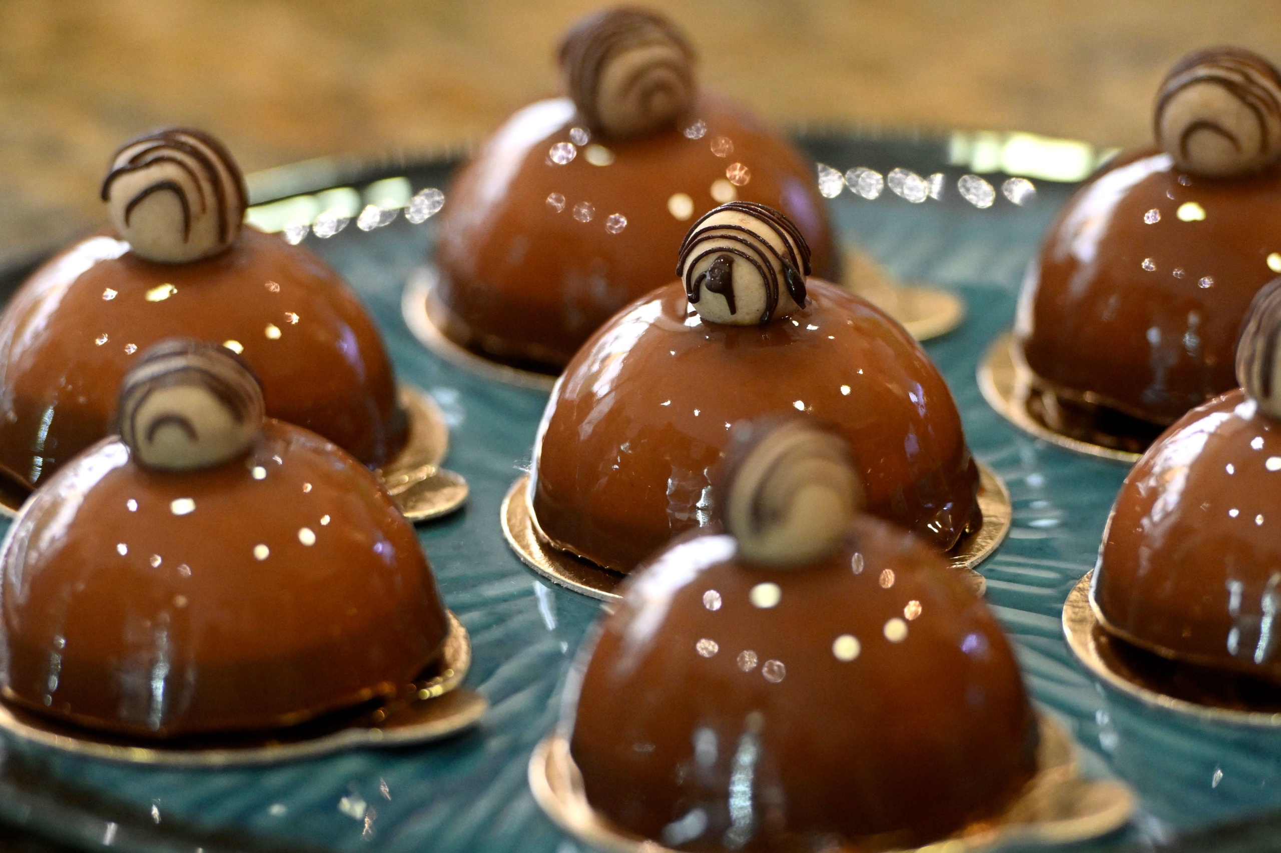 A sütemény belsejében lévő sárgabarackzselé vaníliával, kevés szegfűszeggel és fahéjjal van “megbolondítva”. A sütemény tetejére csokoládébevonat és egy kicsi gesztenyegolyó került – ismertette Bretz Bernadett.